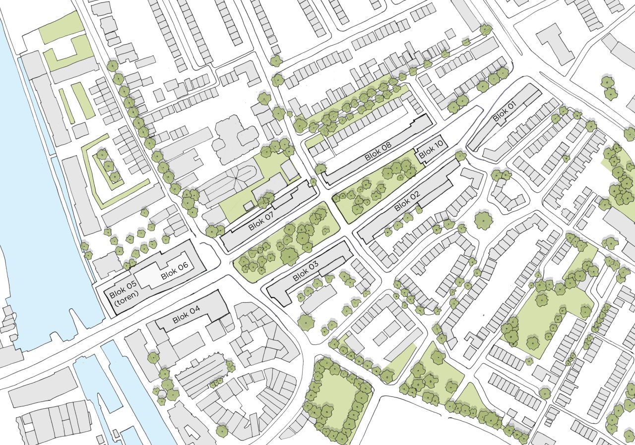 Het plan heeft een stedelijk karakter, maar sluit tegelijkertijd goed aan op de kleinschalige woon- buurten in de omgeving. De ovale vorm van het park zorgt ervoor dat alle omliggende woningen uitkijken op het groen.
