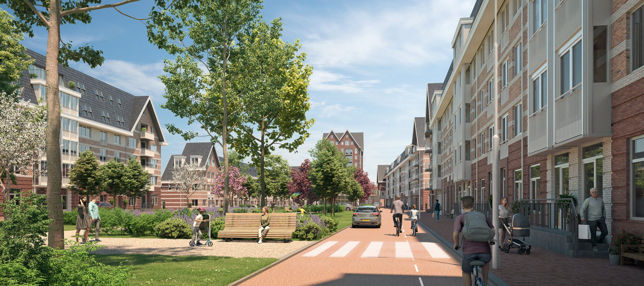Het plan heeft een stedelijk karakter, maar sluit tegelijkertijd goed aan op de kleinschalige woonbuurten in de omgeving.